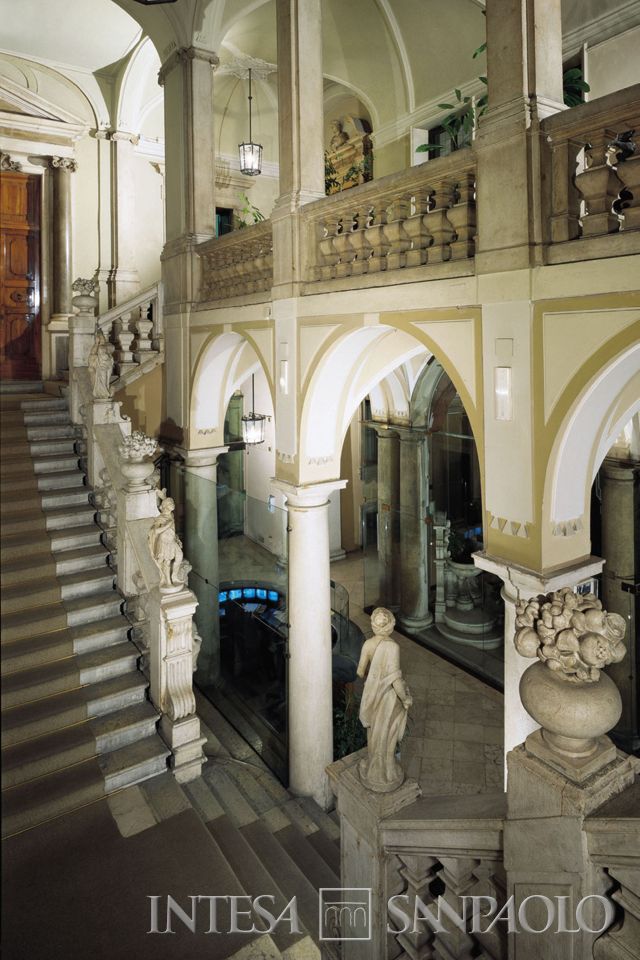 Originariamente il Palazzo è stata la dimora della famiglia Martinengo, che promosse dalla prima metà del XVIII secolo lavori di rinnovo su edifici preesistenti per innalzarne il prestigio, conferendogli aspetti di originalità e singolarità rispetto alle altre dimore signorili della città. ll primo intervento di rilievo venne avviato nel 1735, ispirato ai modelli veneziani di Baldassarre Longhena e commissionato dal conte Giovanni Giuseppe Martinengo di Villagana probabilmente all'architetto Antonio Marchetti; per gli interni, allo scultore Antonio Calegari venne affidata la realizzazione di un gruppo di statue allegoriche, alcune delle quali per lo scalone d'onore; allo stesso scultore furono commissionate anche le modifiche ai giardini e la realizzazione di fontane, oggi non più esistenti. I lavori si conclusero poco dopo il 1756. Nel 1907 il Palazzo fu acquistato dalla Banca San Paolo di Brescia, che intraprese un rinnovo radicale per renderlo funzionale all'attività bancaria. Gli interventi, eseguiti dall'ingegnere Egidio Dabbeni tra il 1924 e il 1925, comportarono la realizzazione, all'interno del cortile, di una saletta ovale retta da colonne di ordine neorinascimentale illuminata da una cupola con un ampie vetrate in stile art-decò; al centro della saletta fu collocata una scultura di Luigi Canonica, San Paolo che incede predicando alla folla, in omaggio alla Banca stessa. Il Palazzo fu gravemente danneggiato durante il Secondo conflitto mondiale dai bombardamenti del febbraio e marzo 1945; gli interventi di ricostruzione furono intrapresi dal 1946 sulla base dei precedenti progetti di costruzione.